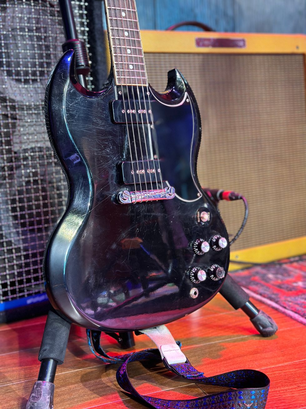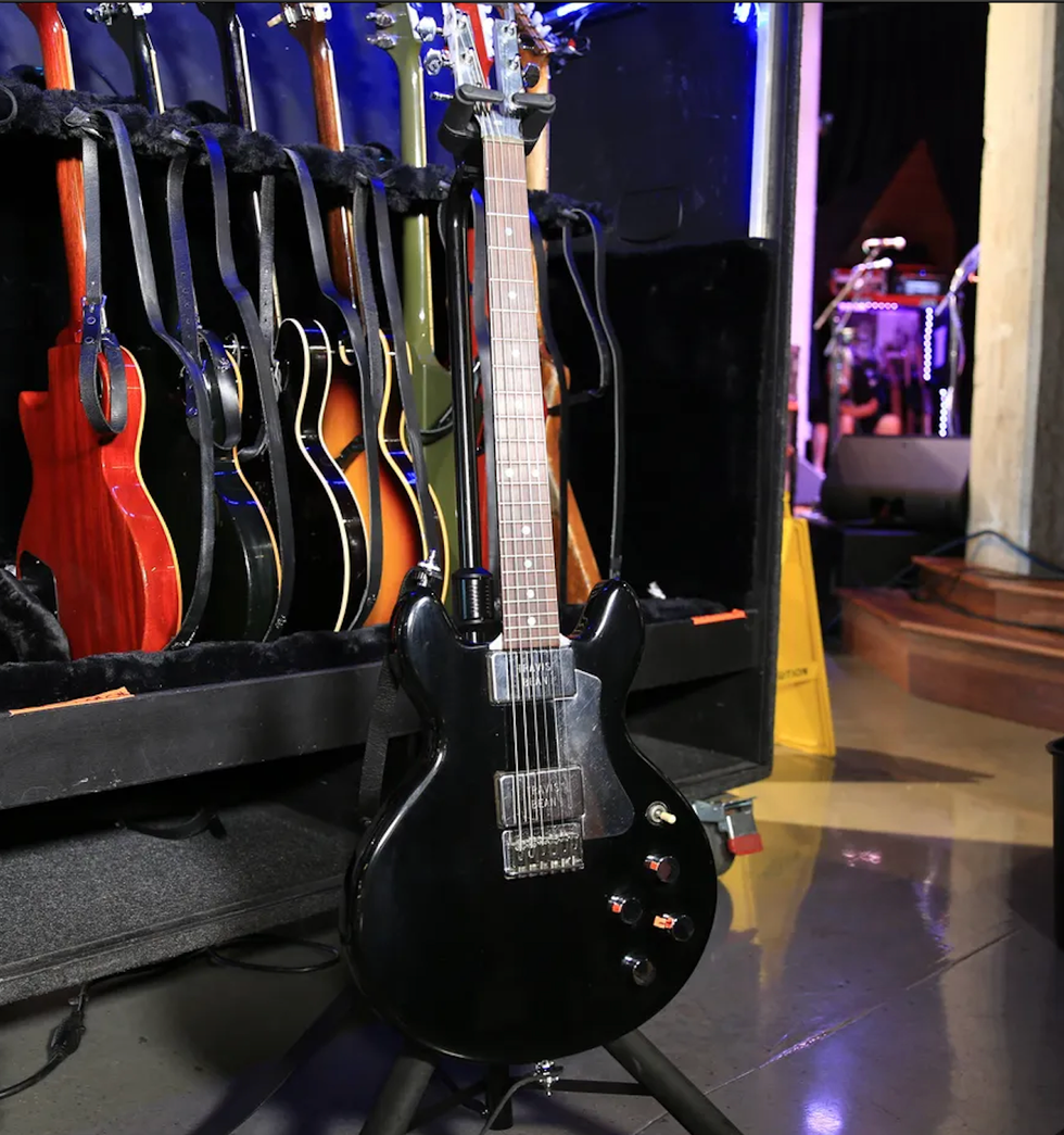Neal’s backup is a beloved Gibson SG, which he bought a while ago after a back surgery, when he says he “needed a light guitar.” He’s used to breaking a lot of strings, so he started using heavier gauge D’Addario .011s on each axe to help keep them intact through the set!