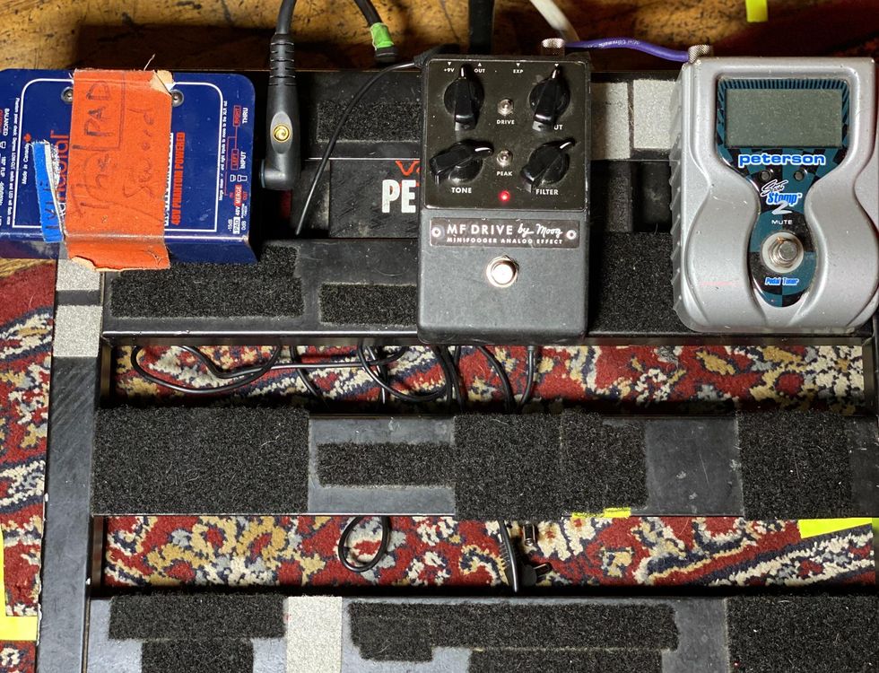 Bryan really only has one pedal—a Moog MF Drive. The other stomps are a Peterson StroboStomp and a Radial J48 1-channel Active 48V Direct Box.