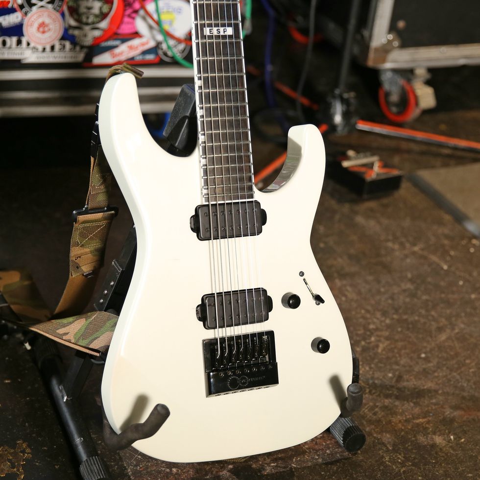 Alex Wade trusted this ESP E-II M-II 7B Baritone EverTune model for the bulk of their Valley set. It’s formed with alder wings around a 3-piece, neck-through maple neck that’s matched with an ebony fretboard. It has a 27" scale length, 24 stainless-steel frets, a bone nut, Gotoh locking tuners, an EverTune bridge, and DiMarzio D-Activator 7 ’buckers. It handles all the drop-G material.