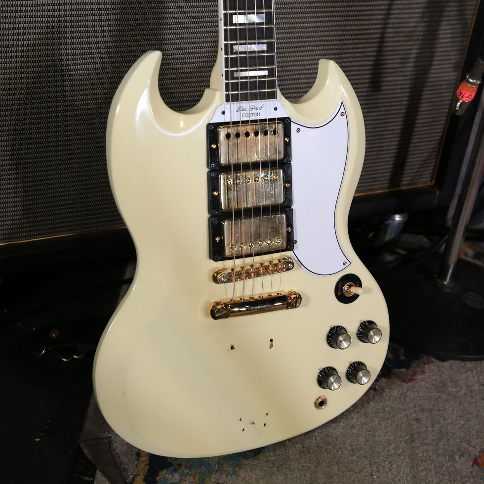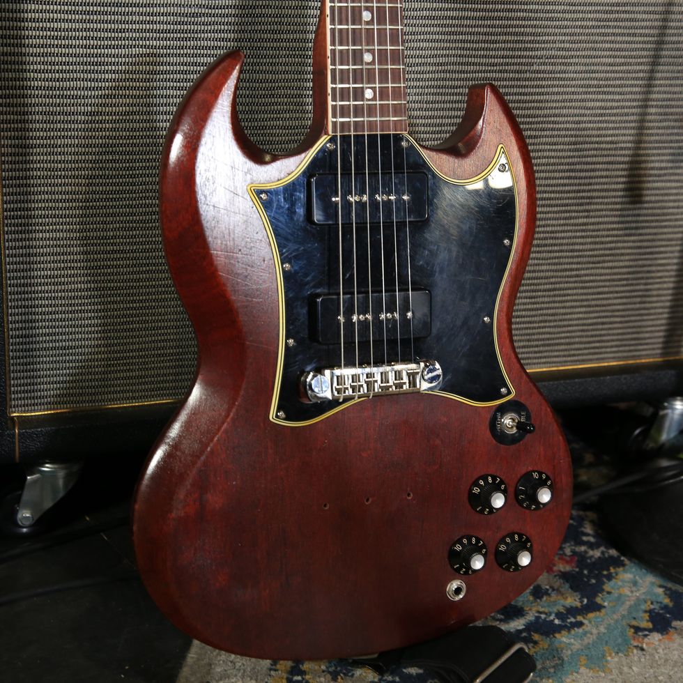 Person brought this 1967 Gibson SG Special back to life with a list of modifications and upgrades, including new pickups and a refinish, but its wood, neck shape, and original frets all made it worth it to him. The neck shape is narrow but chunky in Person’s hands, landing somewhere near the feel of Tyler Bryant’s 1962 Stratocaster. The pickups now are OX4 P-90s, and like the Custom, this one’s had its Maestro system amputated.