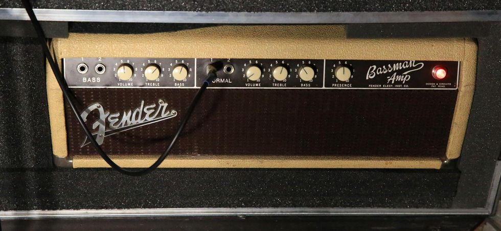 He also relies on this racked blonde Fender Bassman from the early ’60s.