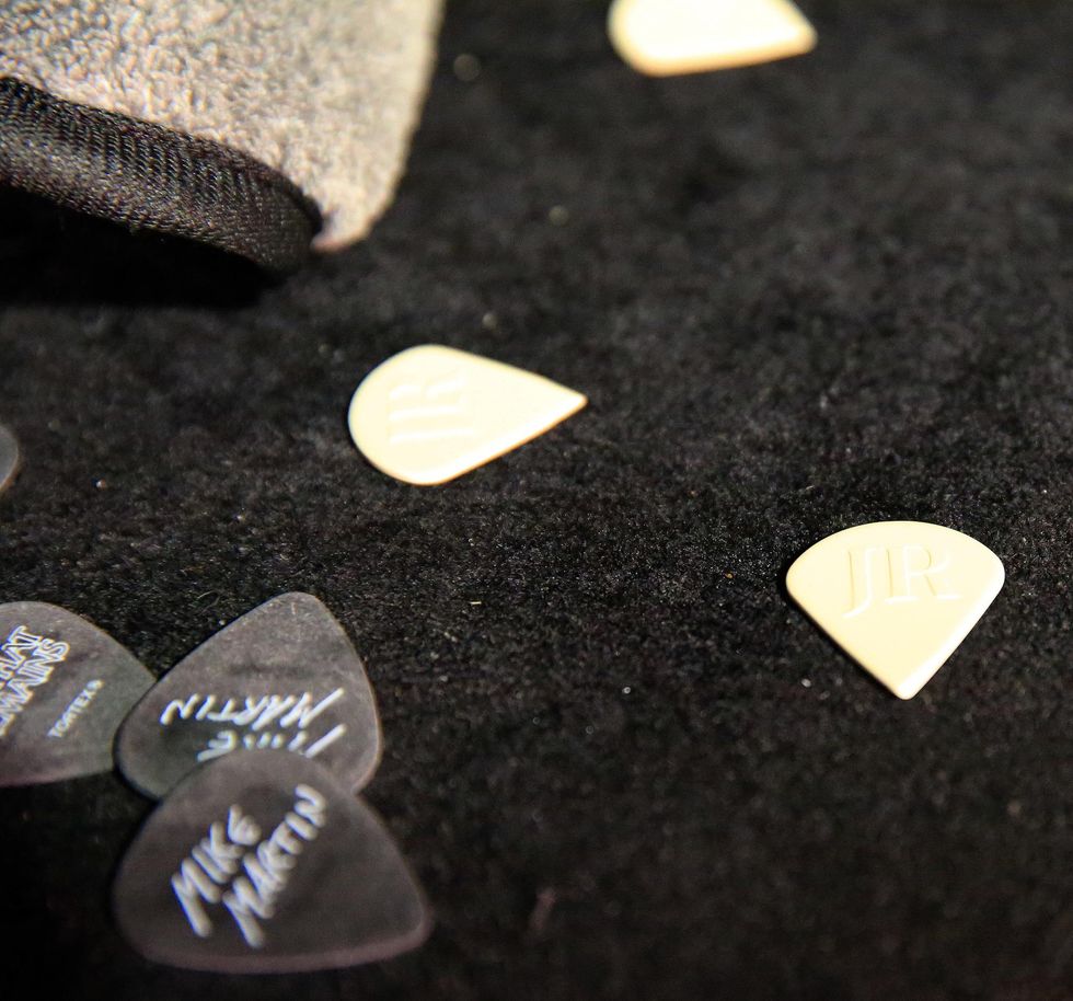 And he’s been hitting the strings with his new custom Dunlop Jason Richardson picks (1.364 mm) that combine the size of Dunlop’s Jazz IIIs with the profile and pointiness of their Tortex Sharps.