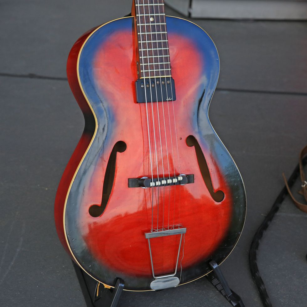 While taking a break from Fontaines D.C., guitarist Conor Curley enjoyed some downtime in Berlin. Luckily, he encountered this 1960s Framus 03000 Studio that he took home for roughly $250. The archtop already had the Schaller pickup installed at the end of the fretboard, and he was amazed how well it meshed with distortion: “It just sounded so chubby and big.” He strings the Studio—which gets used on “How Cold Love Is”—with flatwounds.