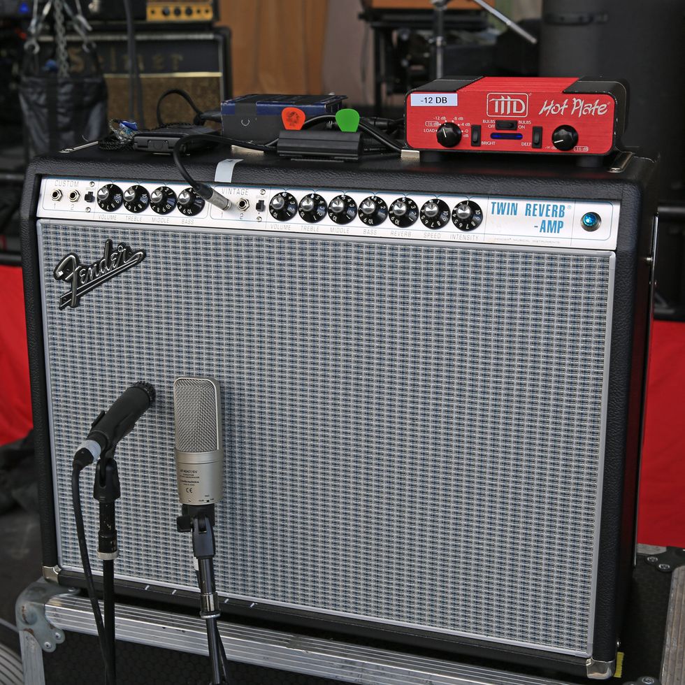 Curley plugs all his instruments into this Fender ’68 Custom Twin Reverb because “they don’t flavor anything. They let your guitars sound like your guitars, and they let the pedals do what they need to do.”