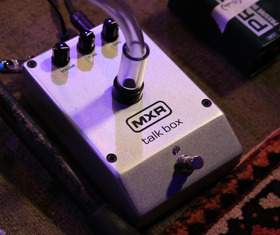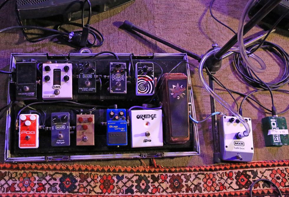 Oh! And back to that Talk Box. Here’s a close-up view of this classic device that is making a resurgence among psyche-retro-delic players. Wicklund really lays into the talker, turning heads with its gritty, warbling, lung-driven tones. In her early years onstage, playing in a classic rock cover band, she used the pedal to chase the signatures of Joe Walsh, Peter Frampton, Jeff Beck, and other notable Talk Box users.