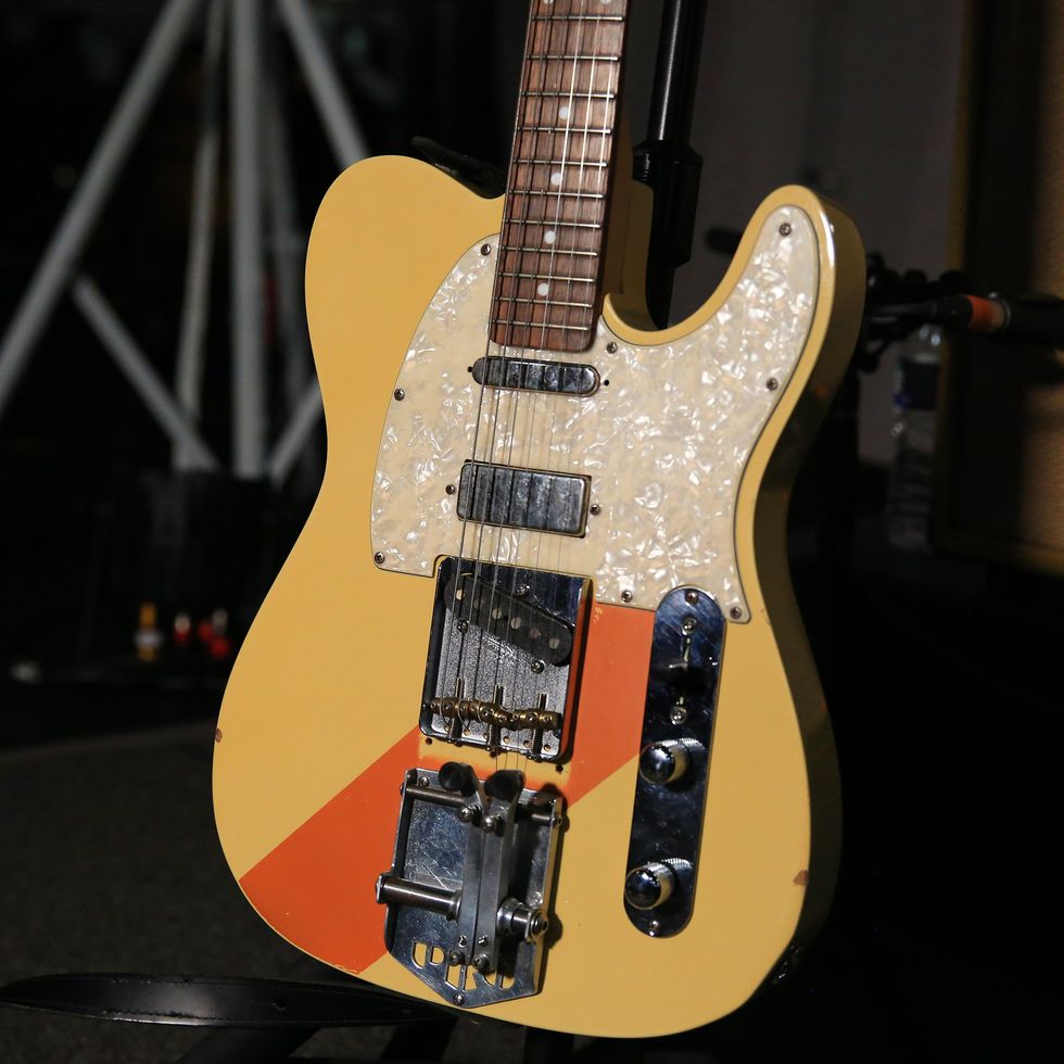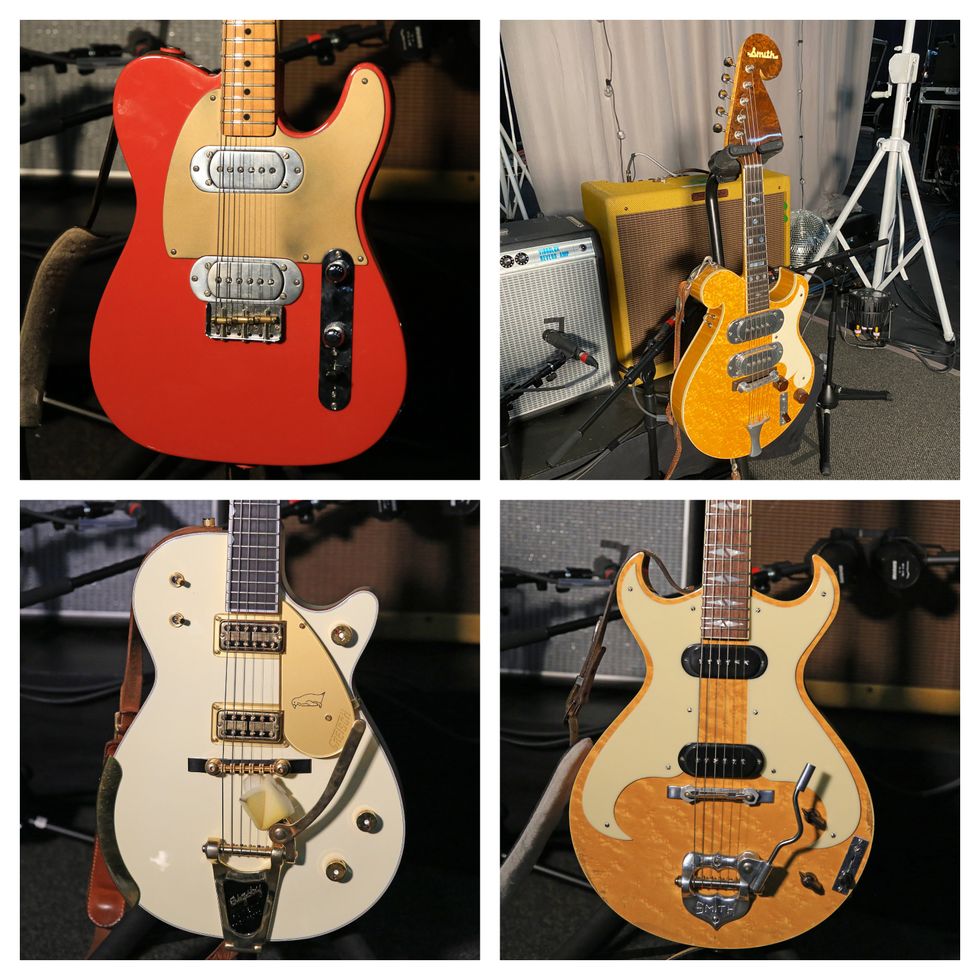 The remaining gunslingers in McPherson's holster including a Fender Custom Shop Tele, a Gretsch G6134T-58 Vintage Select '58 Penguin with Bigsby, and a pair of TK Smith creations (right side)