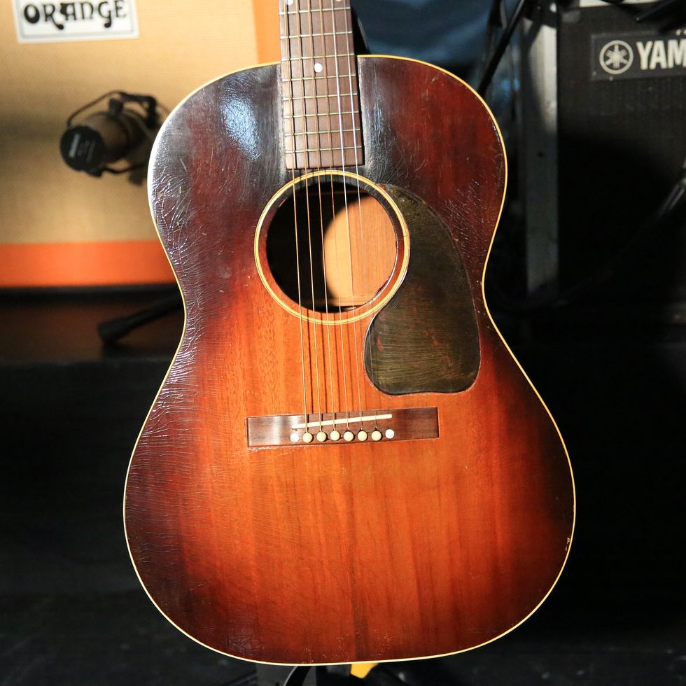 For acoustic, Kraus chases two options: this 1943 Gibson LG-2.