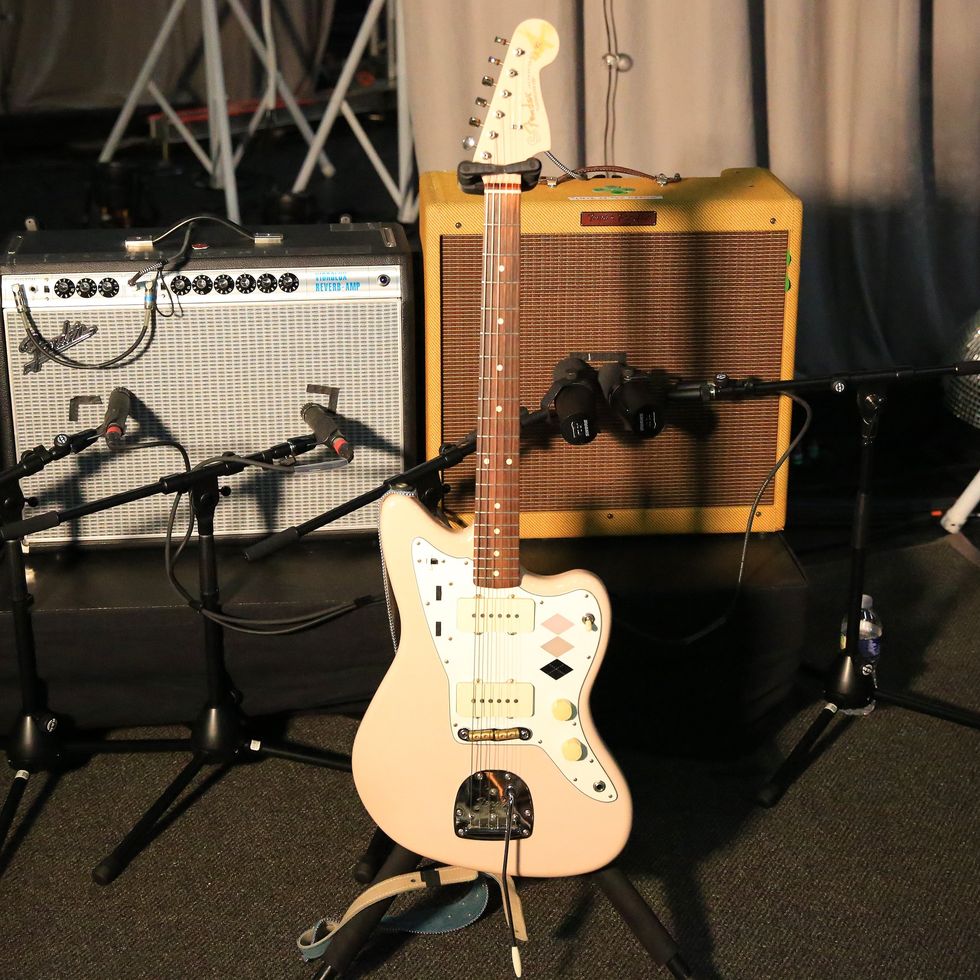 This Fender Jazzmaster features some custom work by guitar maker TK Smith and the Fender Custom Shop. All JD’s guitars are strung with D’Addarios.
