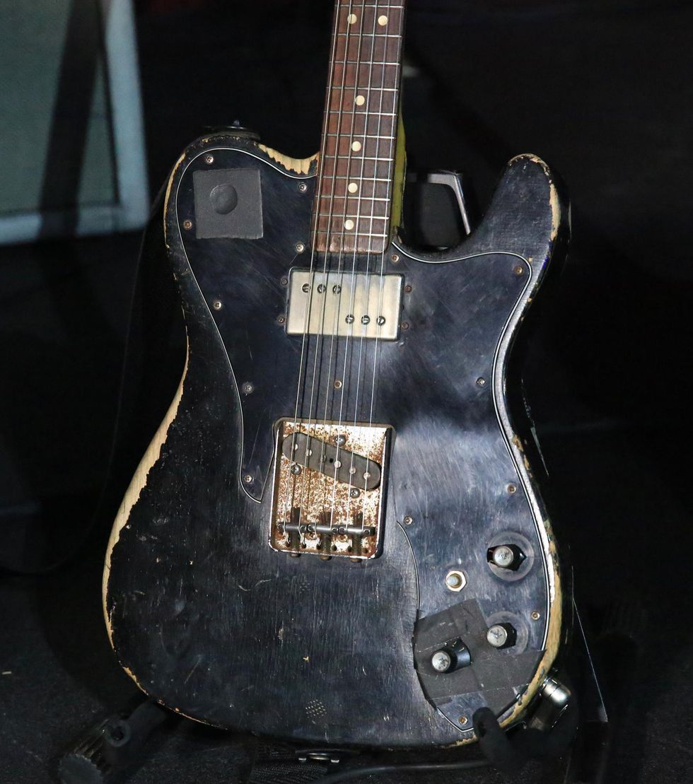 Similar to Carlstroem, guitar mate Nicholaus Arson travels light when Stateside. Again, his No. 1 is a 1970s Fender Telecaster Custom that has just its overwound (stock) bridge pickup wired up. The vintage Tele once belonged to frontman Howlin’ Pelle Almqvist, who generously sold it to Arson. Both his Ts take Ernie Ball Paradigm 2020 Power Slinkys (.011–.048).