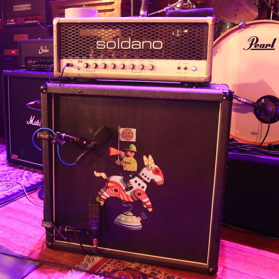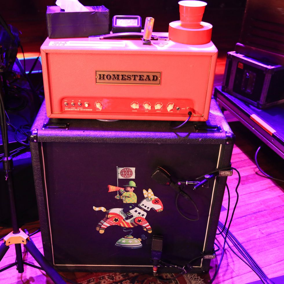On the other side is a 100-watt Homestead head that Haynes runs into a 4x12 cab loaded with 25-watt Celestion Greenbacks.