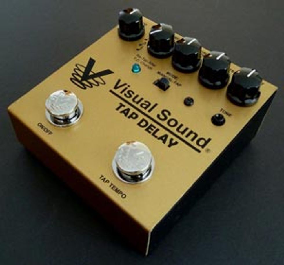 Spring Hill, TN (Jan 13, 2012) -- Visual Sound is presenting the V3 Dual Tap Delay's little brother, the V3 Visual Sound Tap Delay. At less than half the size of the Dual Tap Delay, the new V3 Tap Delay has all the great tone and features of channel 2 of the DTD, yet it can fit on even the most cramped pedal board. Like it's big brother, the Tap Delay features a tone control for darkening your echo, and a modulation knob to add a bit of chorus to your repeats. Half the size, all the tone.