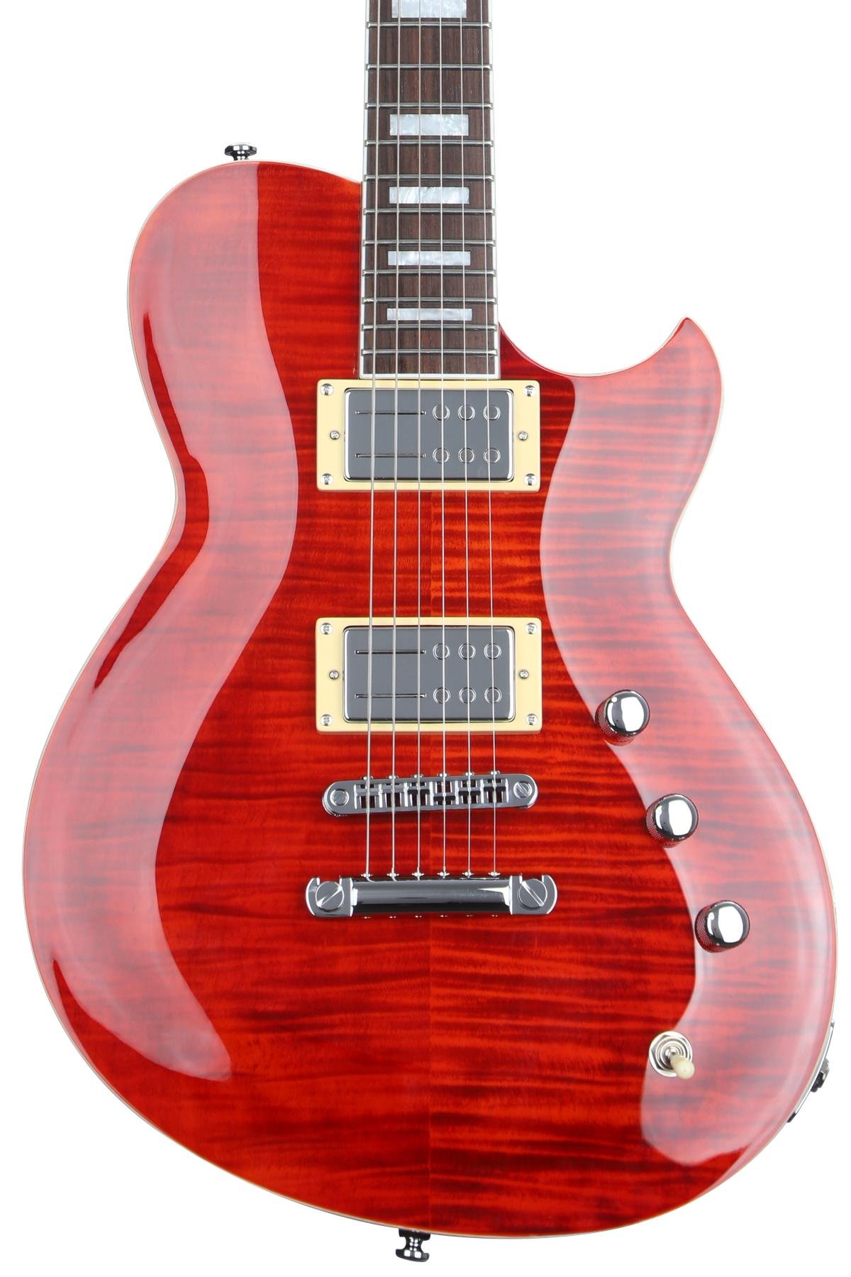 The Roundhouse wallops! The new Roundhouse RA is taking that wallop to another level! It’s the classic single cutaway reimagined for today’s player. This carved top set neck – a first for Reverend Guitars — has a massive tone but is lightweight and balanced. Every Roundhouse features a set of Railhammer Hyper Vintage Humbuckers, a flame maple top, a TOM stop-tail bridge, rosewood fretboards, and no pickguards. Perfect for all your rock-and-roll dreams!