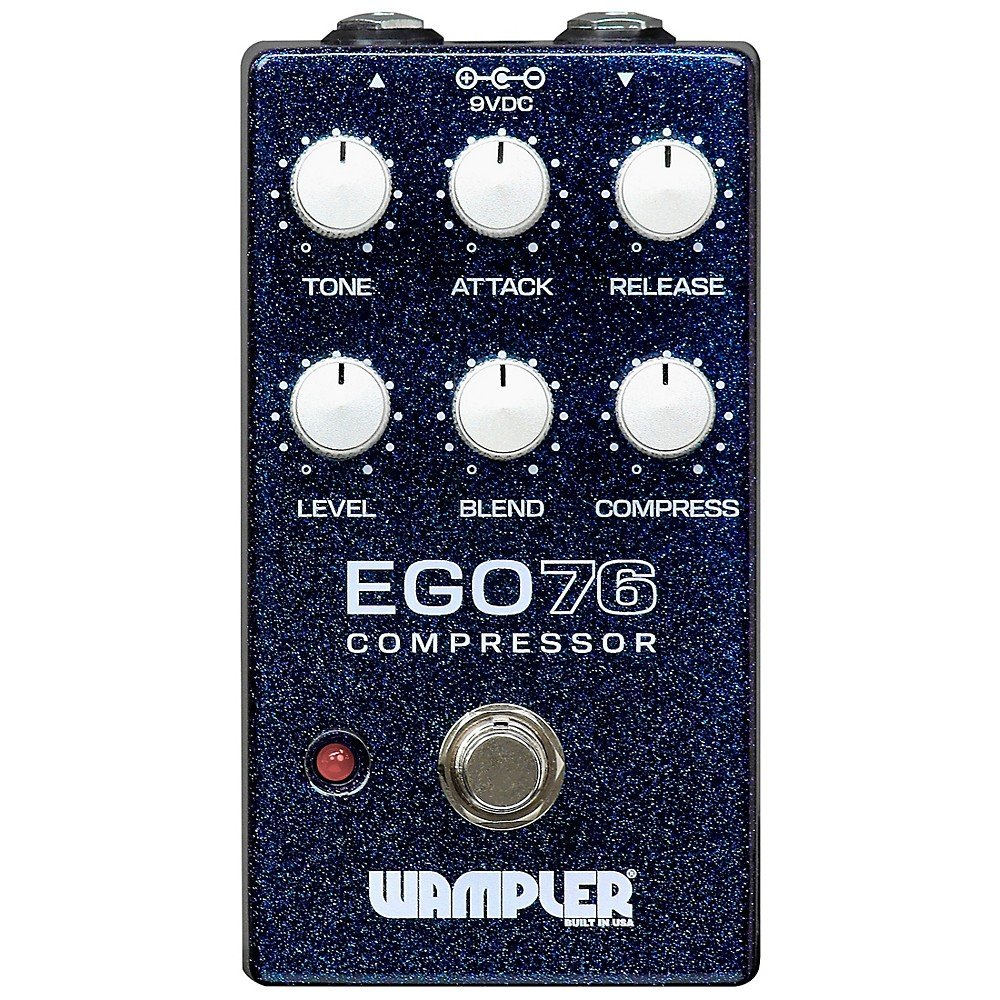 The Wampler Ego 76 Compressor pedal delivers iconic studio tone shaping in a pedalboard-friendly format. Built as a tribute to the legendary 1176 Peak Limiter, this compressor enhances your tone rather than squashing it. With studio-grade Attack, Release and Tone controls, plus a Parallel Clean Blend, the Ego 76 gives you complete command over compression and dynamics. Whether you want transparent leveling or pushed, "enhanced" tone, this pedal has the versatility and quality to handle it all. Iconic FET Circuitry and Studio-Inspired Design The Ego 76 is fueled by field-effect transistor technology, just like the 1176 that inspired it. This solid-state circuitry is responsible for the fast, musical compression and enhanced tone that made the 1176 a studio legend. Wampler translated this into a pedal format with a rugged encasement and intuitive control layout. The Attack, Release, Tone and Compression controls offer a level of precision usually only found in high-end studio gear. With the Ego 76, you can shape dynamics and tone to perfection. Parallel Compression for Natural Dynamics A standout feature of the Ego 76 is its Parallel Clean Blend control. This allows you to blend in your uncompressed signal with the compressed tone, creating parallel compression. The result is a balanced tone with controlled peaks but natural dynamics. Use the Clean Blend to add subtle fullness and sustain or more dramatic "squish." Either way, your original tone remains intact thanks to the parallel signal path. This is a versatile tool for enhancing tone without sacrificing feel. Tone Control for Tuned Brightness No compressor is complete without a Tone control and Wampler gave the Ego 76 a meticulously tuned one. Derived from the 1176's signature sound, the Tone knob adds brightness in all the right places. Dial it in to capture the 1176's energy and clarity or back it off for a warmer compression. The Tone contrBuilt in the U.S.A.. High-grade components selected for superior sound and response. Premium chameleon sapphire finish and aluminum controls. Six controls Tone, Attack, Release, Level, Blend, Compress. Battery connection and 9V power jack. Top-mounted input and output jacks. Includes limited 5-year warranty. Dimensions: 2.5" x 4.6" x 1.5" (64 mm x 120mm x 38mm) height excludes knobs and. switches. Power draw: 20mA, 9V DC - Do not exceed 9V DC.